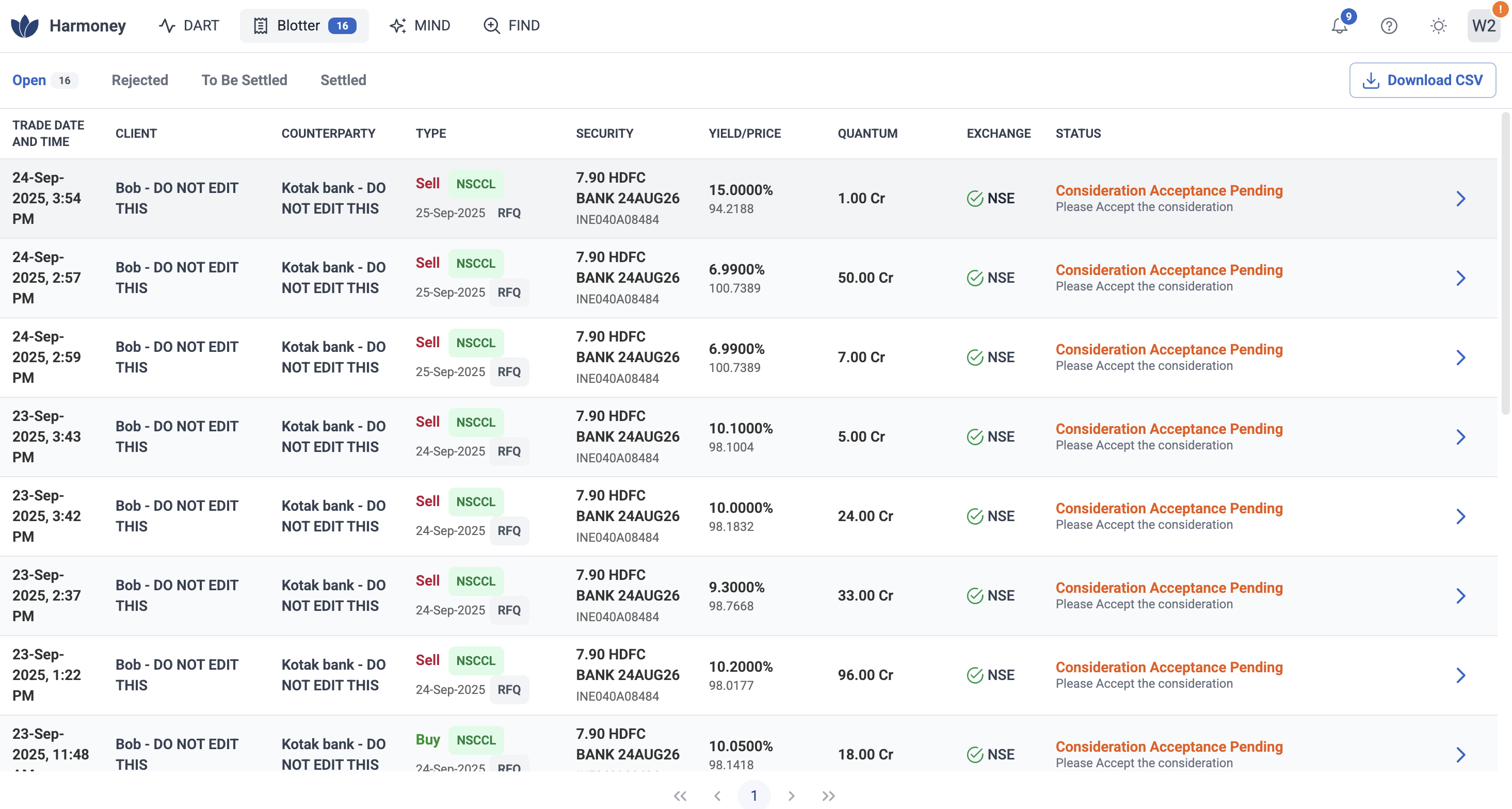 - To Be Settled - Once the consideration is agreed upon by both the traders, the order moves here