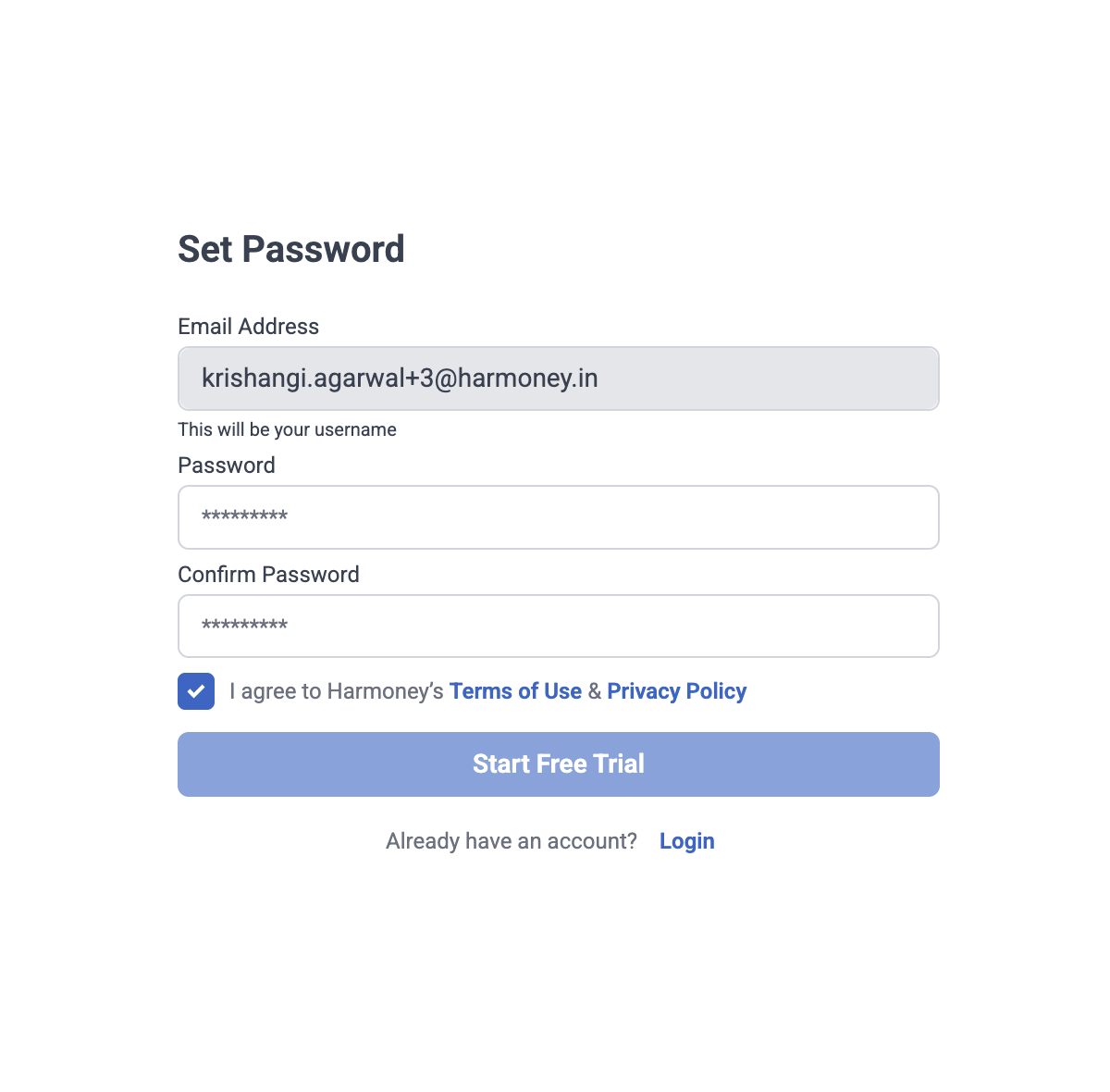 Follow the steps given below to create Harmoney account manually: